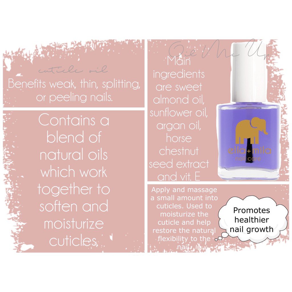 Ella mila cuticle oil. Luckily I found after trying many different products that when I use this cuticle oil daily it makes a huge difference in keeping my nails from peeling and looking ugly and deformed. Apply using the dropper and massage a small amount into the cuticles. 350 out of 5 stars 2 reviews ellamila.