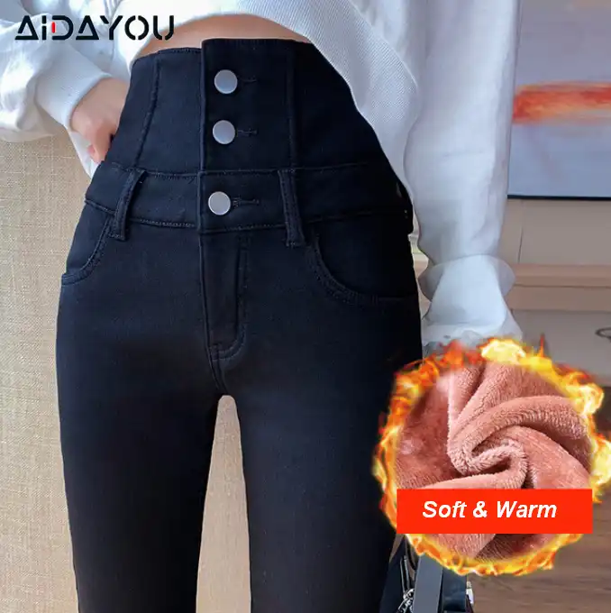 High Waist Jeans Fleece Lined For Women Winter Push Up Pants Stretchy With Velvet Denim Pants Autumn Slim Ouc675 Jeans Aliexpress