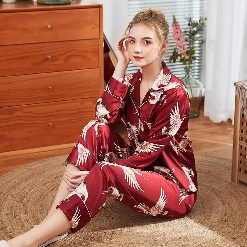 Plus Size Red Pyjamas Set M 5xl Women Silk Satin Pajamas Long Sleeve Sleepwear Pijama Suit Sleep Lounge Set Pants Loungewear Set Pajama Sets Aliexpress