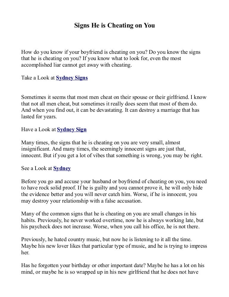 10 Signs your man is cheating on you1He doesnt want to tell people yall are together. A cheating partner might also suddenly be forgetful about picking up the kids birthdays and other important events etc. It might be that your boyfriend is cheating but in the hopes that he can have a bit of fun.
