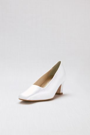 Dyeable Simple Satin Low Heel Pumps David S Bridal