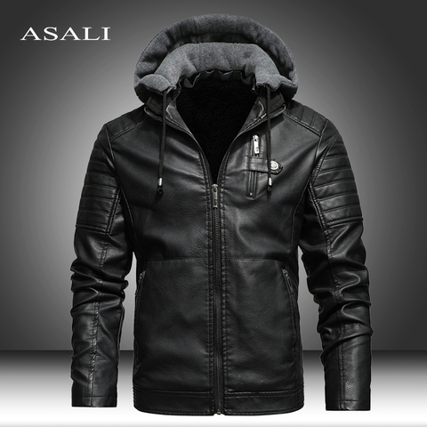 Mens Leather Jacket 2020 New Motorcycle Bomber Jackets Men Winter Warm Pu Leather Coat With Removable Hood Outerwear Jackets Men Faux Leather Coats Aliexpress